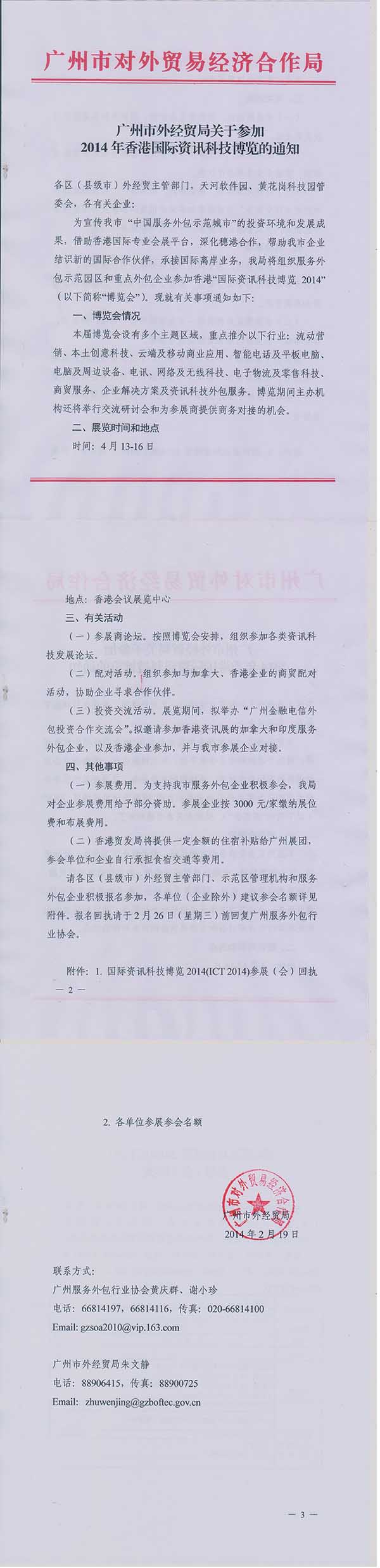 转发:广州市外经贸局关于参加2014年香港国际资讯科技博览的通知