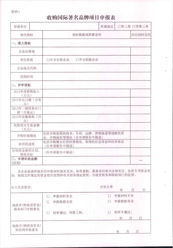 广东省商务厅广东省财政厅关于做好2014年省级扶持企业收购国际著名品牌及促进经贸转型升级专项资金申报工作的通知