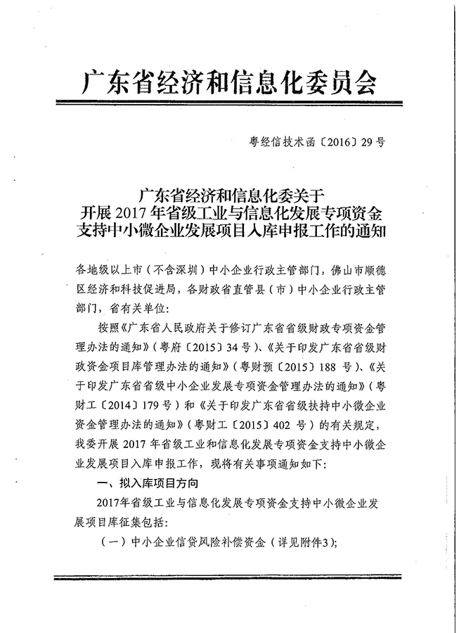 转发:广东省经济和信息化委关于开展2017年省级工业与信息化发展专项资金支持中小微企业发展项目入库申报工作的通知