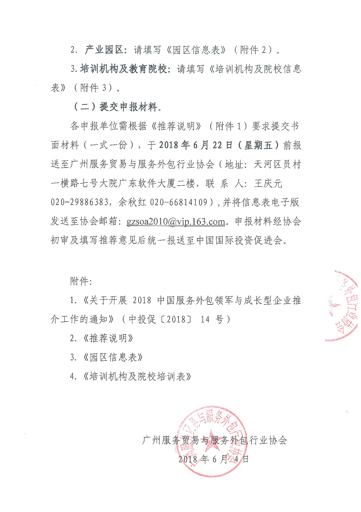 关于组织开展2018年中国服务外包领军及成长型企业、服务外包培训及教育院校、服务外包专业园区申报工作的通知