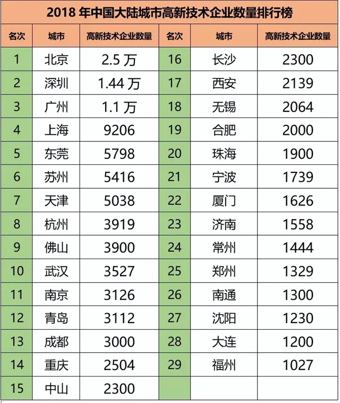 除了苏州和东莞,佛山和中山两个珠三角地级市也惊艳了一回,高新技术企业数量都位居前15名,超过大部分省会城市和计划单列市,显示这两座产业强市的功底。在未来冲击科创板上,值得看好。