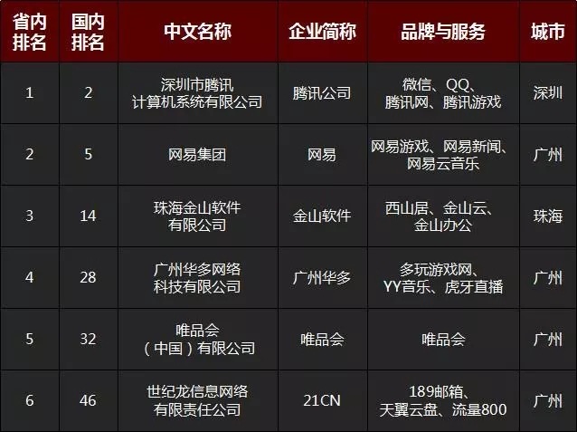 在工信部发布的《2018年我国互联网企业100强榜单》中,广东省内共有14家互联网企业上榜,深圳有8家,广州有5家,还有一个是来自珠海的金山软件。值得一提的是,在广东省的的前六名中,有4个来自广州,而深圳只有1个。
