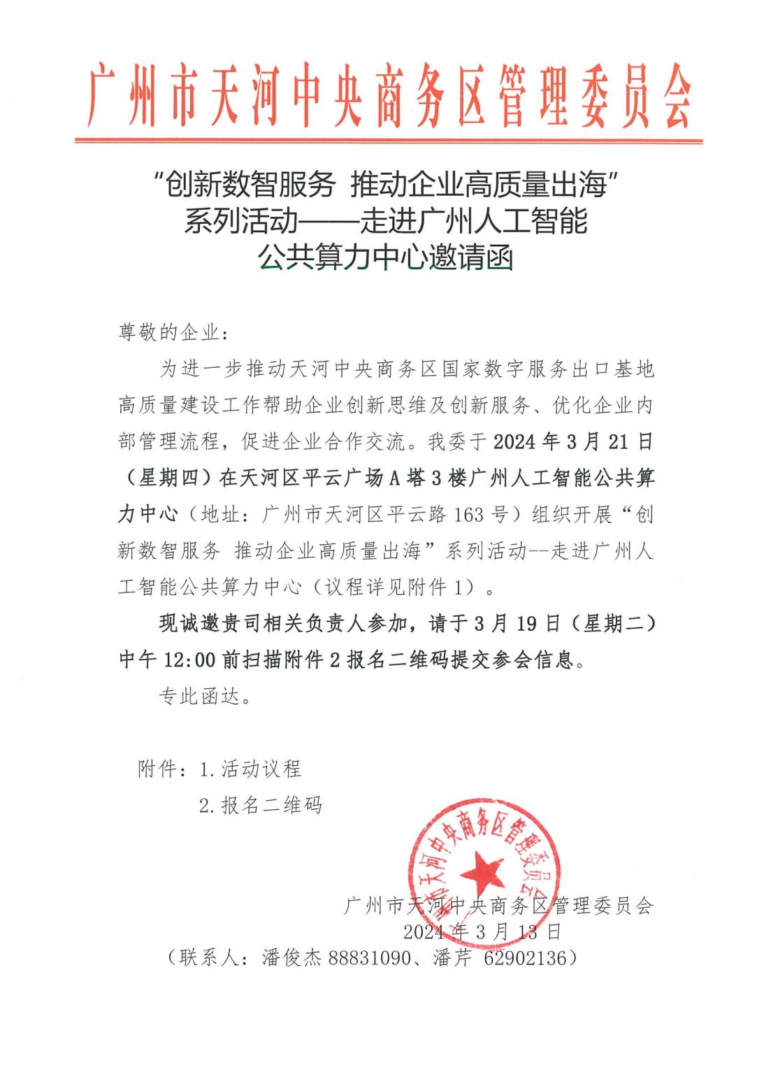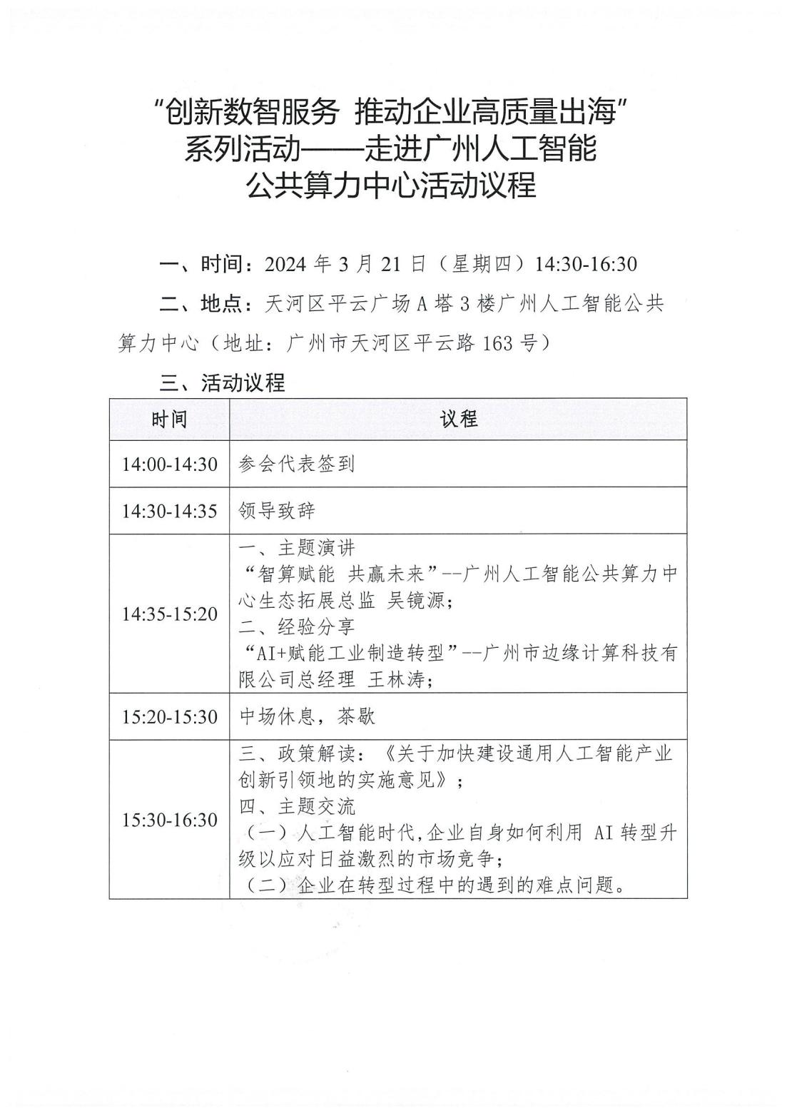 “创新数智服务 推动企业高质量出海”系列活动——走进广州人工智能公共算力中心邀请函